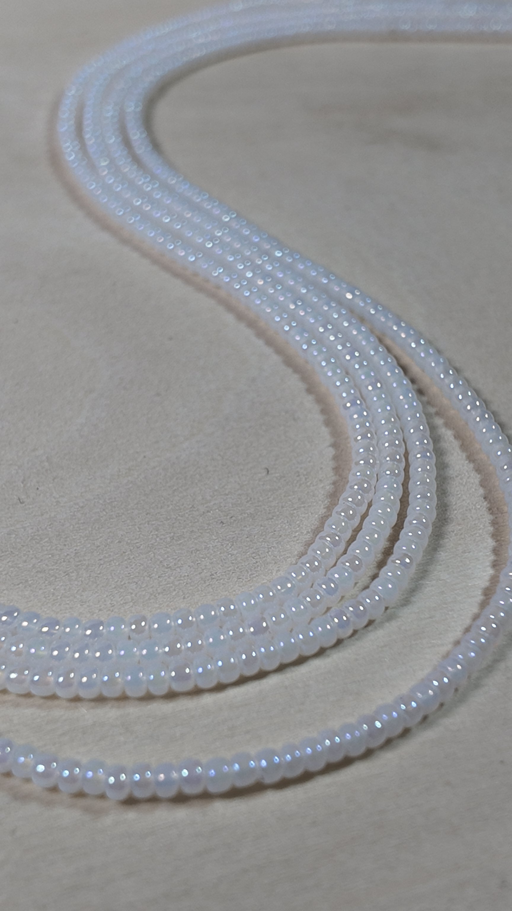 This strand of exquisite white alabaster beads embodies the essence of new beginnings and purity, representing the endless possibilities that lie ahead. The pristine white color of the alabaster symbolizes a fresh start, a clean slate, and the hope of a brighter tomorrow.