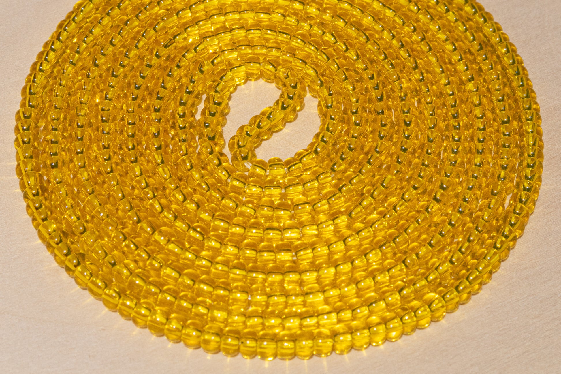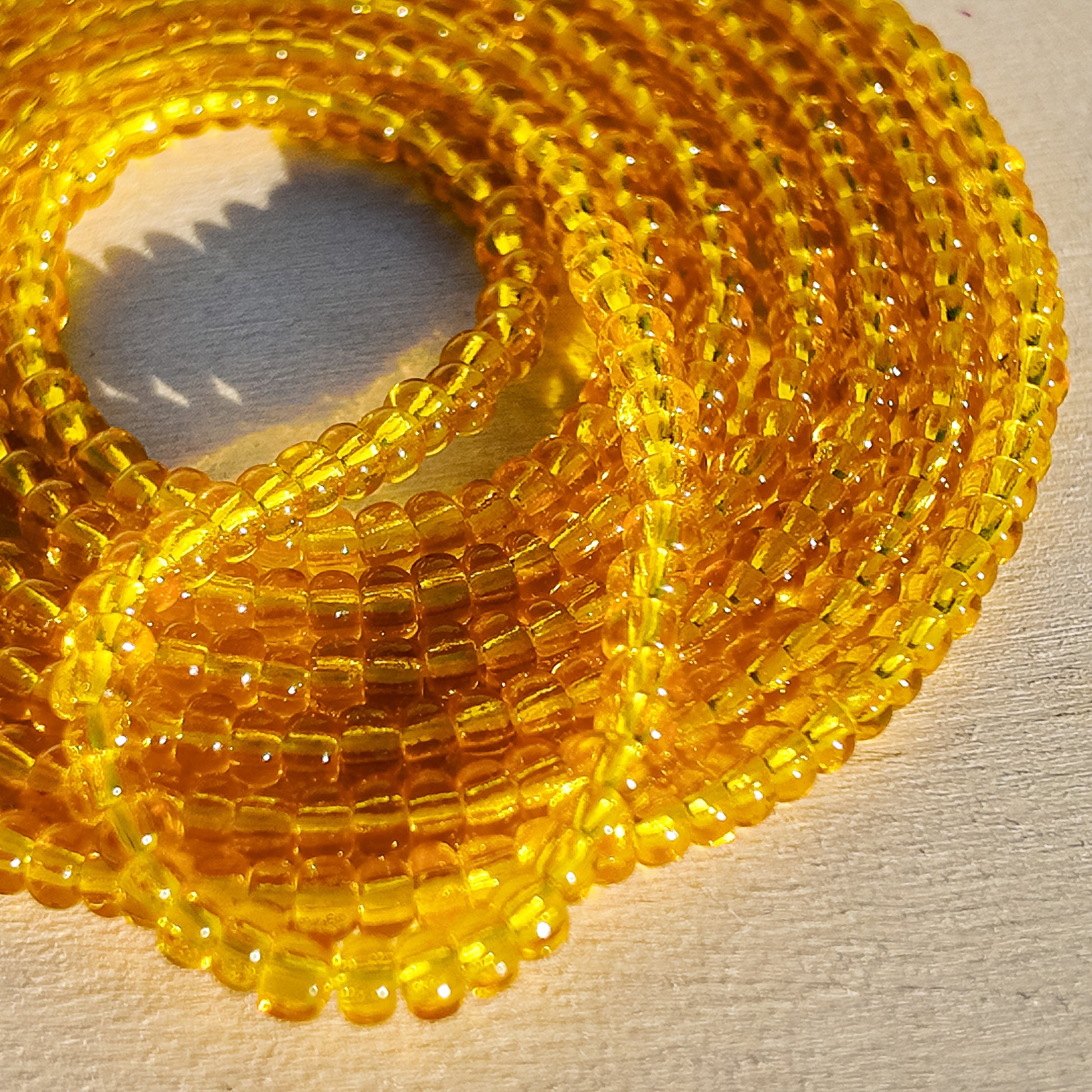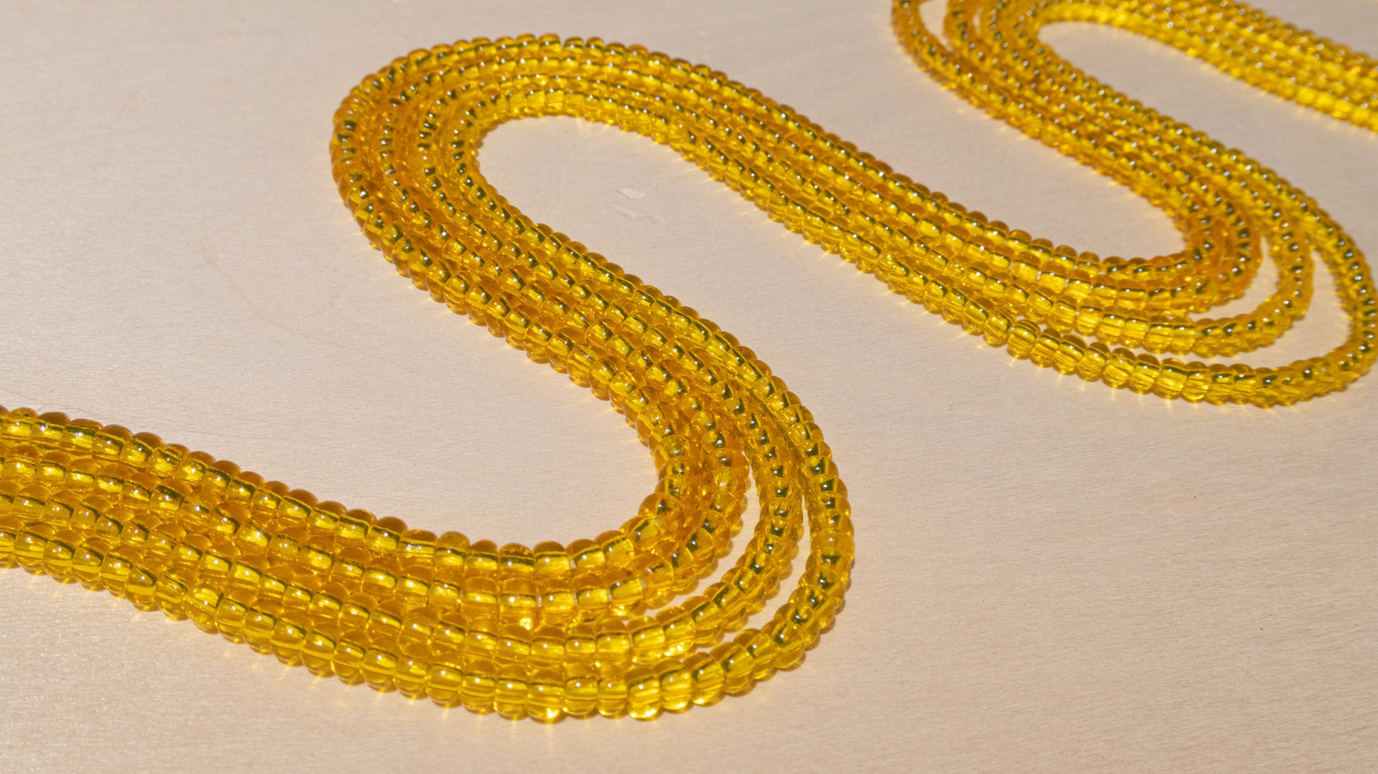 Crafted with transparent yellow glass beads, Twelve•XIV embodies divine resiliency and a radiant sense of self. In a world that may challenge you or try to diminish your spirit, this traditional tie-on waistbead serves as a reminder to remain true to who you are at all times.